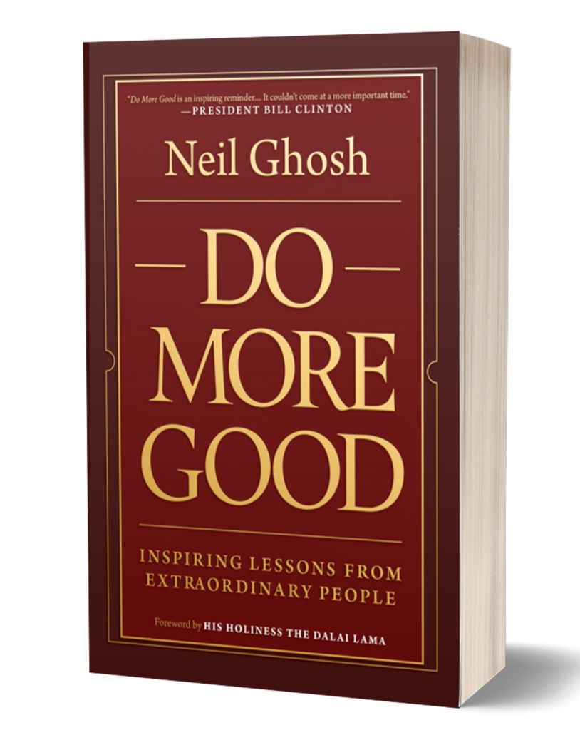 Neil Ghosh, March 2025. Do More Good takes readers through a journey of exploration into the lives of change-makers around the world—shining a spotlight on the most important lesson we can glean from each. Including stories of Neil Ghosh’s personal encounters with Malala, Nobelist Muhammad Yunus, Mother Teresa, His Holiness the Dalai Lama, Joe Biden, John McCain, John Glenn, Hillary Clinton, Ross Perot, Dr. Imam Umer Ahmed Ilyasi , Shimon Peres, José Andrés, Darren Walker, among others, Do More Good connects their lessons with tips and resources to help readers take positive action now.